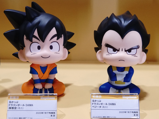 Over at the Megahouse booth, some irresistibly cute figures of Goku and Vegeta were on display for the first time! The “Rukappu” series, where they sit and look up adorably, is perfect for fans who want to add some extra cuteness to their collection. Plus, the Desktop Real McCoy EX series showcased high-quality figures that perfectly replicate Dragon Ball illustrations!