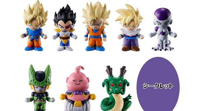 Lineup: Super Saiyan Goku, Vegeta, Super Saiyan 3 Goku, Super Saiyan Gohan, Frieza, Cell, Majin Buu, Shenron, plus one secret