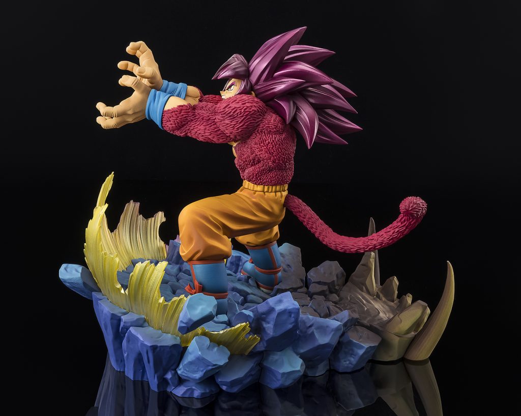 Every detail has been carefully realized, from the powerful volume of Goku’s limbs based on his on-screen appearance to his pearl-finished hair that adds depth and intensity. The specially designed base enhances the dramatic perspective of the battlefield, while the blue effects swirling around Goku even reproduce the blinding glare of the Kamehameha itself.