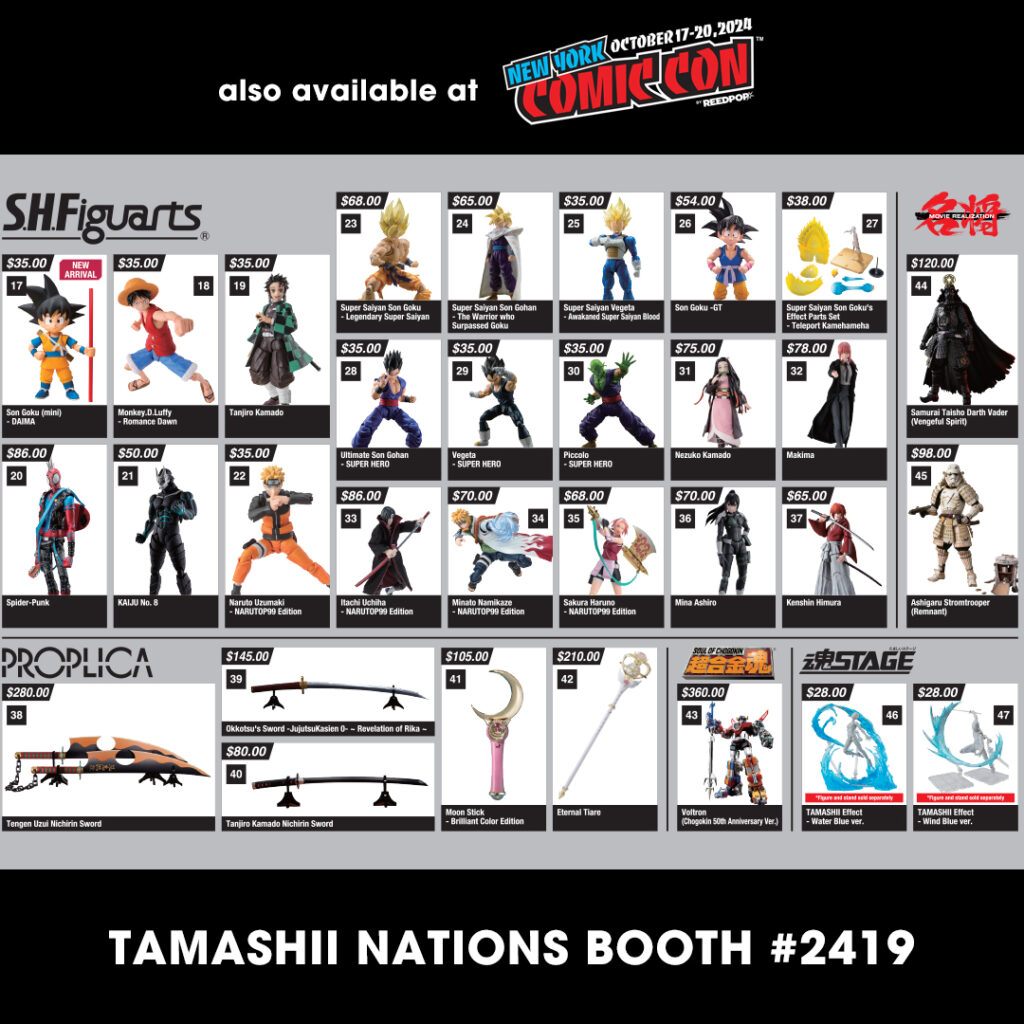 Today is the start of New York Comicon 2024 and Tamashii Nations/Bandai are selling the SSGSS Vegeto Exclusive figure for $90. In additon, you can also purchase the Tamashii Nation Store Exclusive figures SSJ Goku Z Fighter and Goku Innocent Challenger. There are also several reissue figures for sale as well as the Goko Mini Daima figure from S.H. Figuarts. Check them out below: